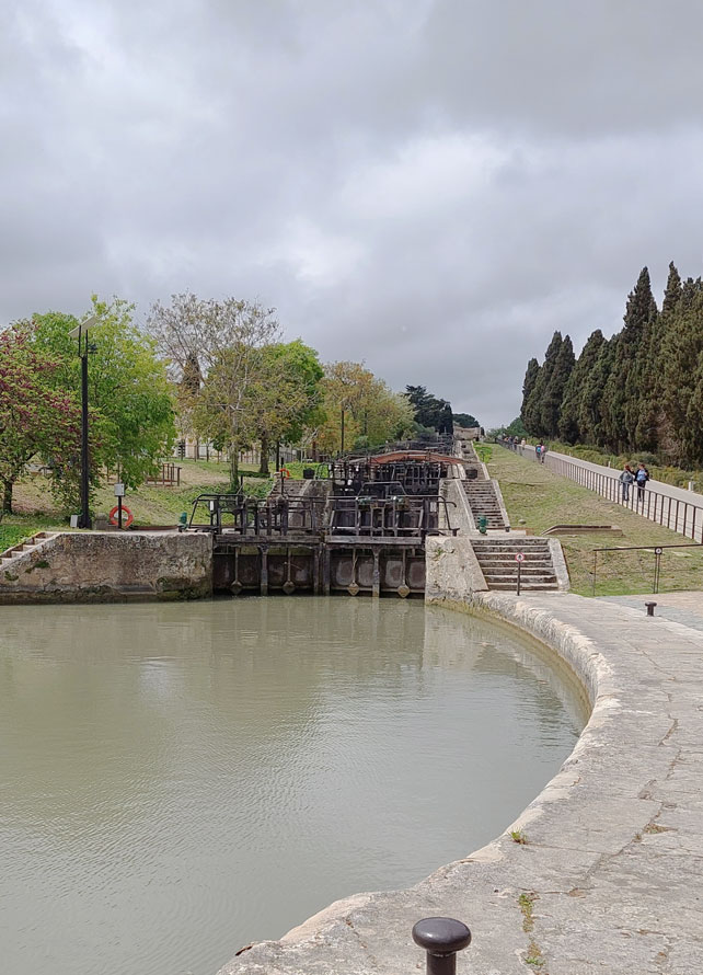 Y es que pegado al antiguo estanque, el Canal du Midi cruza bajo la colina a través del famoso túnel del Malpas, el único en todo su recorrido.