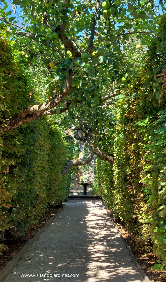 Dejando atrás los jardines de los sentidos, entramos en un claustro formado por setos de carpe que nos traslada a la atmósfera romántica e íntima de los jardines medievales.