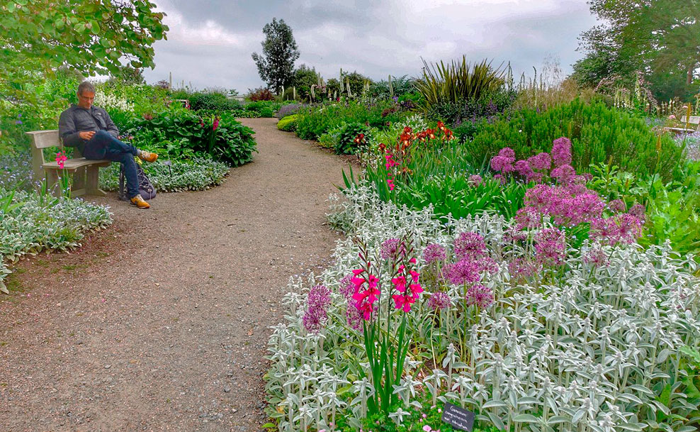 El famoso Jardín de Gravas, fue diseñado en los 90 sobre el antiguo aparcamiento de vehículos, pensando especialmente en comunidades que prosperan bien en condiciones secas y en suelos pobres en nutrientes.