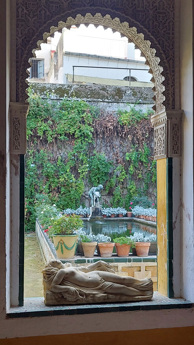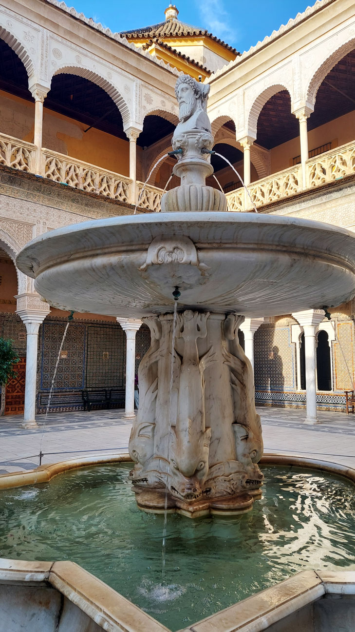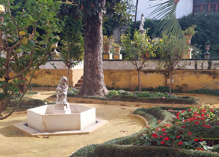 Naturalmente, el agua juega un papel esencial en el jardín, reflejando su carácter andalusí y es también una manera eficaz de refrescar el cálido clima sevillano.