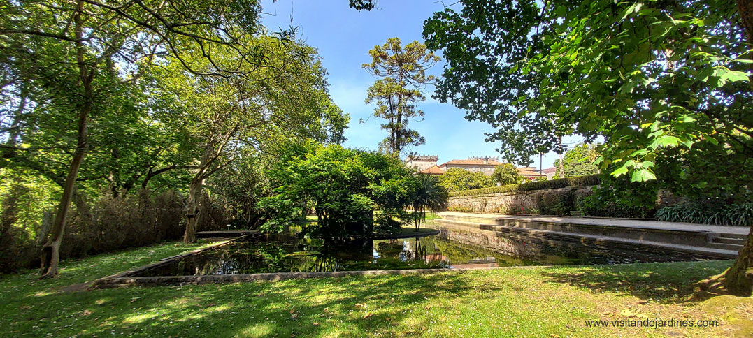Se trata de una pradera rectangular, rodeada por dos pequeños senderos alrededor de un estanque formal, con una isleta central donde se muestra una maqueta del pazo. El espacio se encuentra plantado con grandes árboles distribuidos de manera irregular.