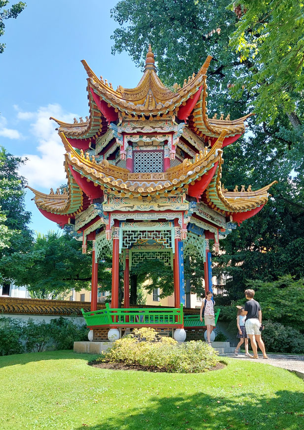 A orillas del lago de Zúrich, en una popular zona de baño llamada Blatterwiese, , se encuentra el «Chinagarten» (Jardín Chino) también conocido como «Chinawiese» (Prado de China).