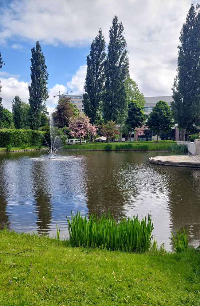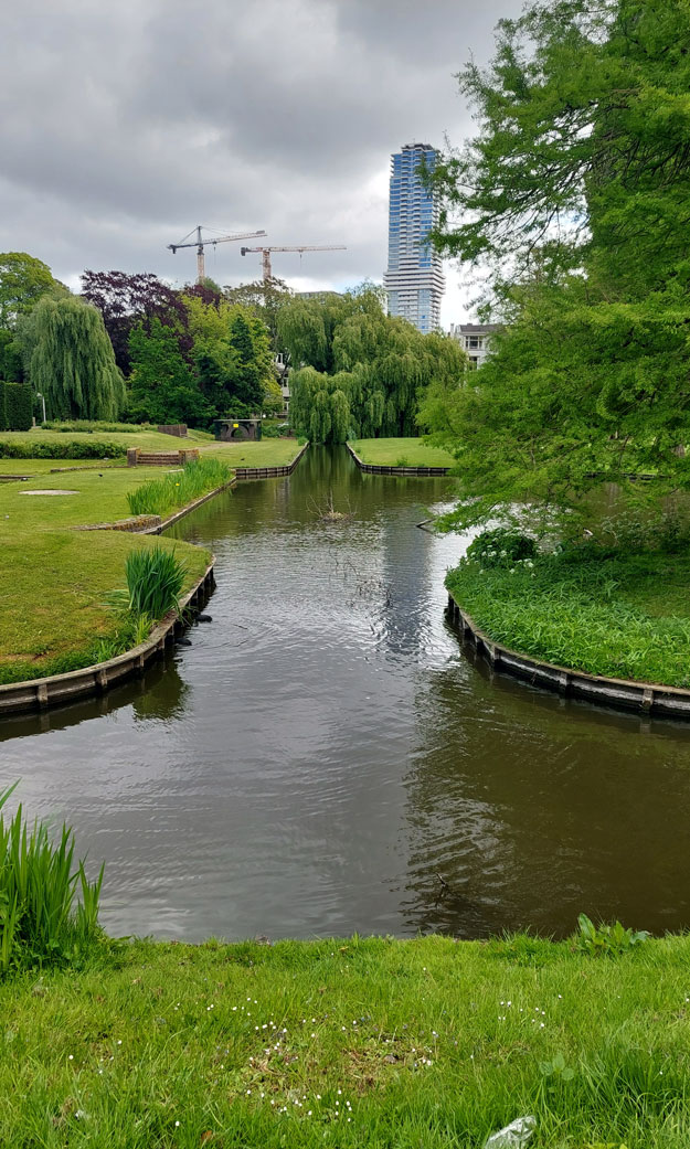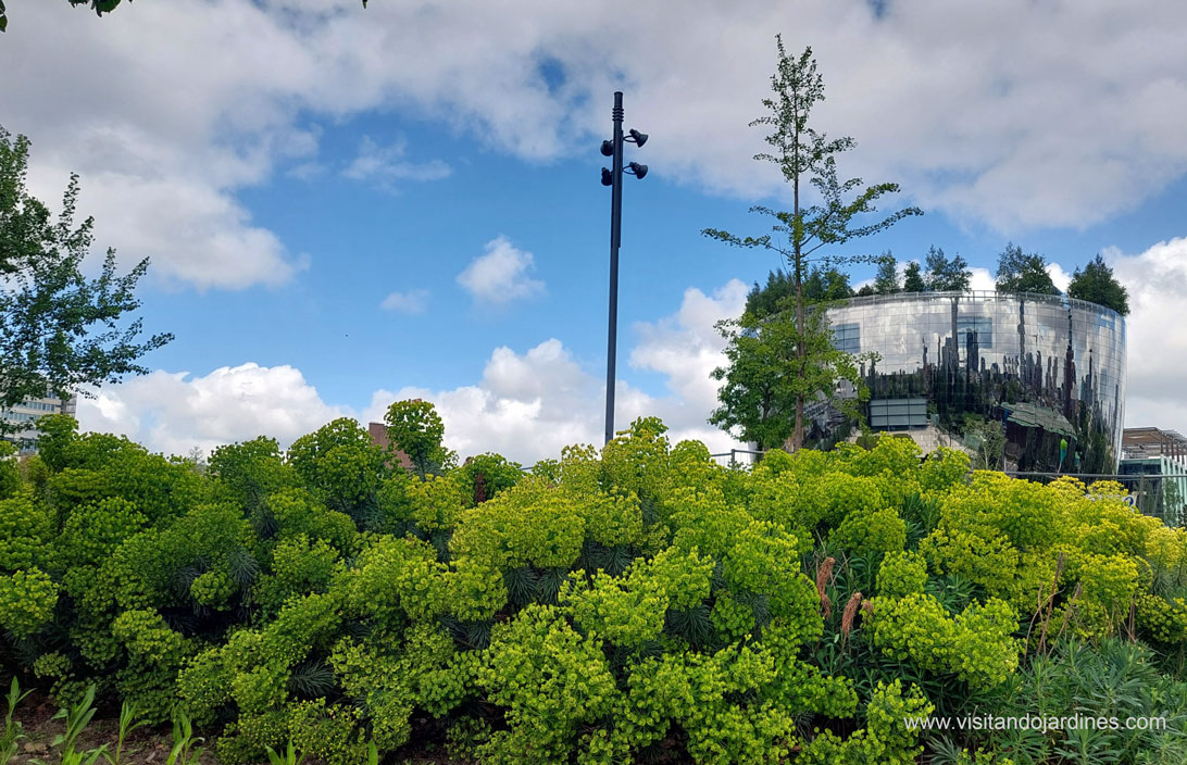 Los trabajos de remodelación del parque, se estan llevando a cabo actualmente y una de las zonas terminadas es la transformación de la entrada del Nieuwe Instituut en un jardín acuático.