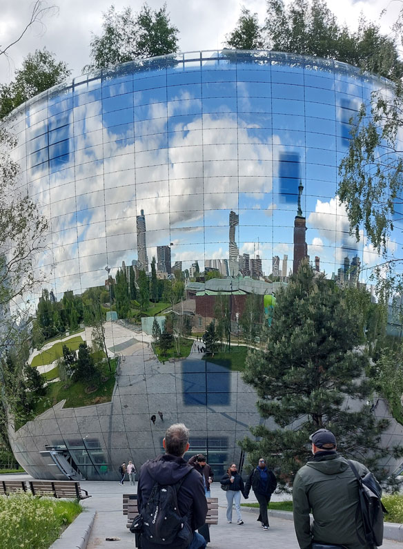 La forma cóncava del espejo crea una imagen de tintes irreales, como si se tratara de una pintura. A menudo, los visitantes se buscan en el reflejo para cerciorarse de que no se trata de un dibujo.