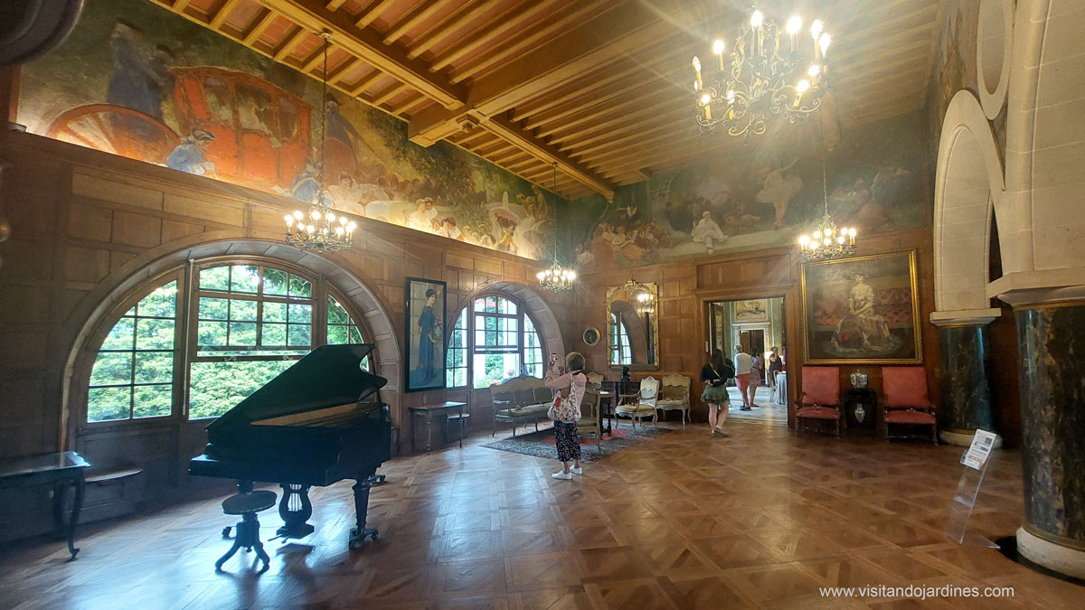 El conjunto constituye una auténtica joya de la Belle Époque y en su interior, los salones decorados con frescos, los vitrales y distintas escenas alegóricas evocan el universo literario del autor.