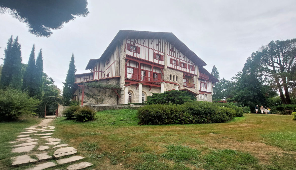 Su éxito como escritor le proporcionó importantes ingresos, gracias a los cuales pudo construir una villa que rinde homenaje a la arquitectura tradicional vasca, con su característica fachada blanca y el entramado de madera roja, realzados por las simetrías y reflejos que proporciona el jardín.