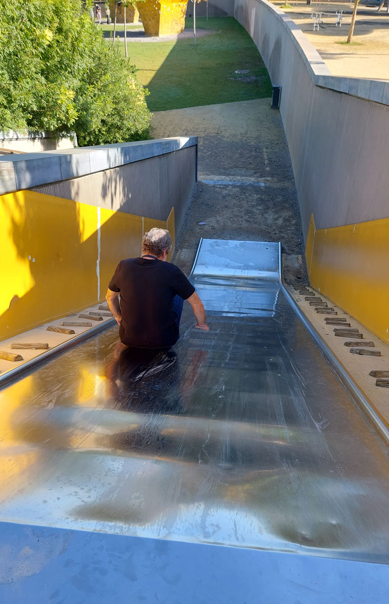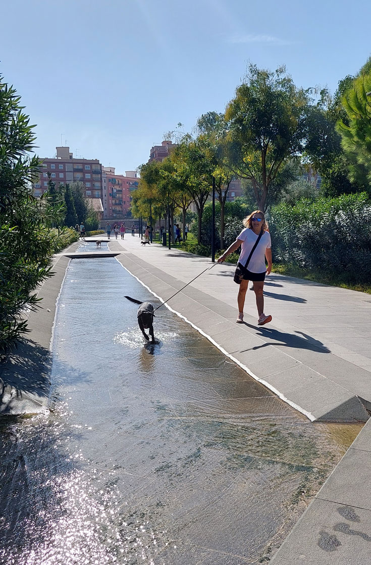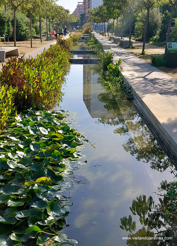 Inspirado en el poema de Ausiàs March titulado “Aigua plena de seny”, encontramos el agua como uno de los principales elementos de diseño en el Parc Central.