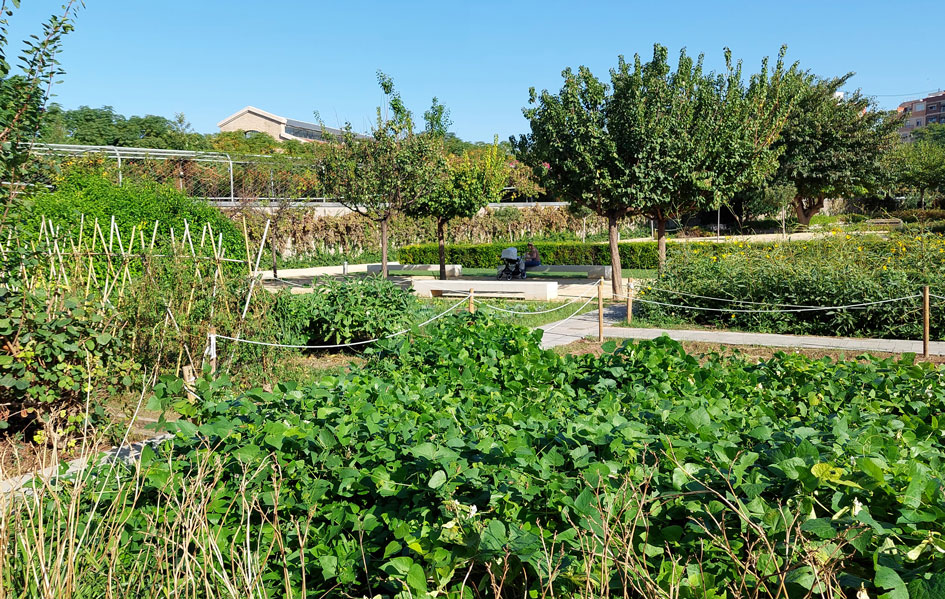 Todo el parque se organiza en “salas” verdes» con diferentes atmósferas: zonas abiertas al sol, rincones de sombra, jardines aromáticos, zona de huertos, áreas de juegos y rincones escondidos rodeados de una densa vegetación.