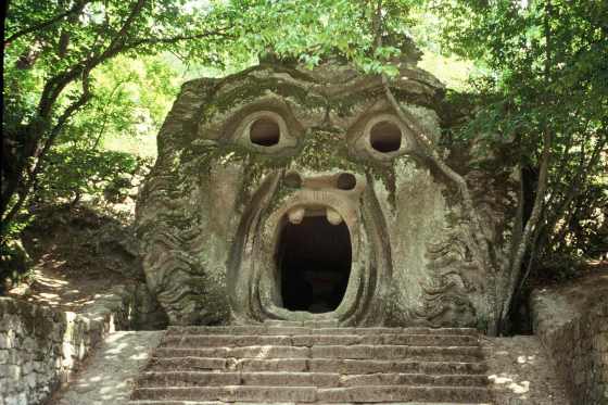El jardín del castillo de la familia Orsini en Bomarzo, conocido como el Parque de los Mostruos, se construyó en un valle próximo al palacio, rehuyendo los cánones renacentistas típicos del siglo XVI.