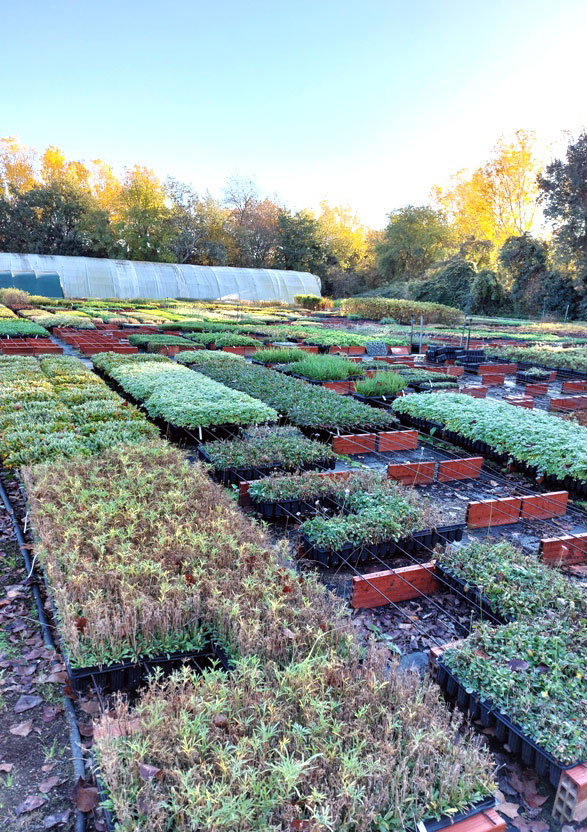 Las plantas de grieta que muestran como se inicia el proceso de renaturalización urbana, la disposición ordenada de las platabandas de los viveros y la megaforbia de Gerland nos dieron la idea de como ordenar este jardín urbano.