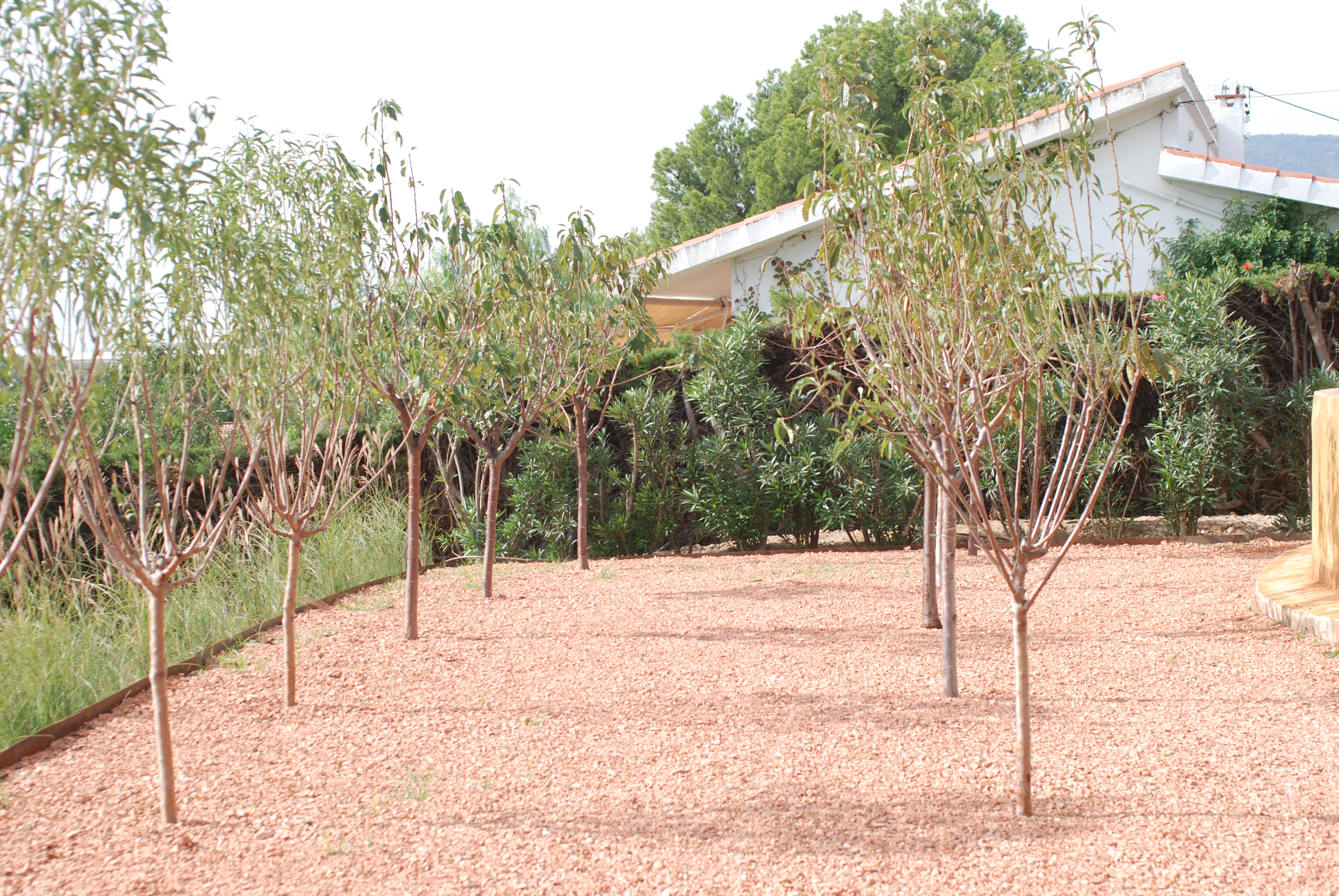 En este espacio se consigue un cromatismo de contrastes con una sucesión de terrazas de distintos pavimentos naturales, que resultan una buena carta de presentación.