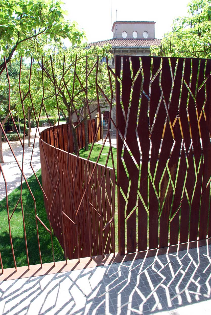 Por el contrario, protege la intimidad de determinadas zonas del bullicio urbano, define bien las entradas y a modo de cuidadoso envoltorio, otorga al parque de Can Mulà la condición y el valor de calidad que sin duda merece este espacio.