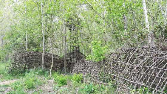 En un espacio escondido de la Garrotxa, cercano al rio Fluvià persisten los restos de una sorprendente actuación, ejemplo de “land art” y “art povera”.